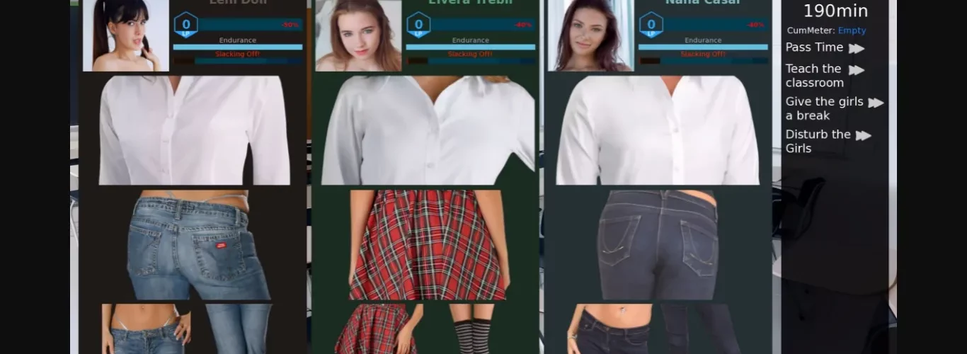 – Added: Girls can buy/sell clothes every week (specifically buying missing uniform clothing + panties and selling un-used clothes)