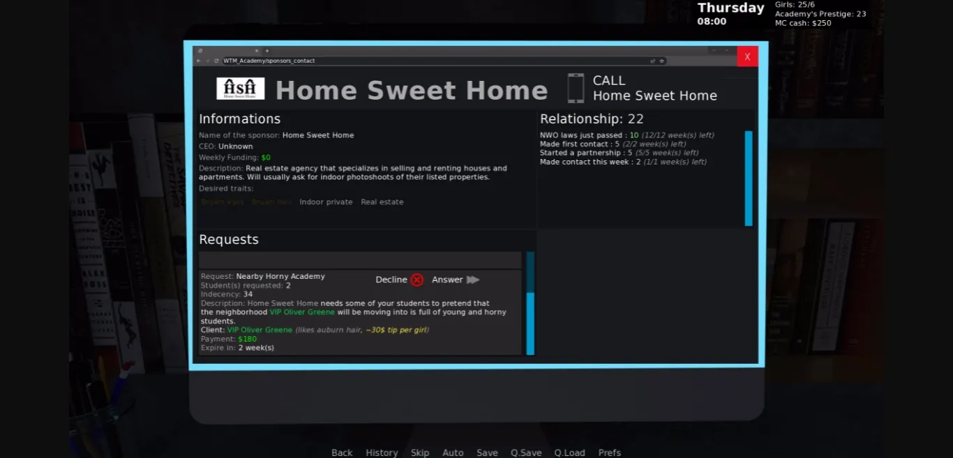This will allow some blackmail plays in future updates. At the start of the game, the girls will also choose their cloth according to their wealth.