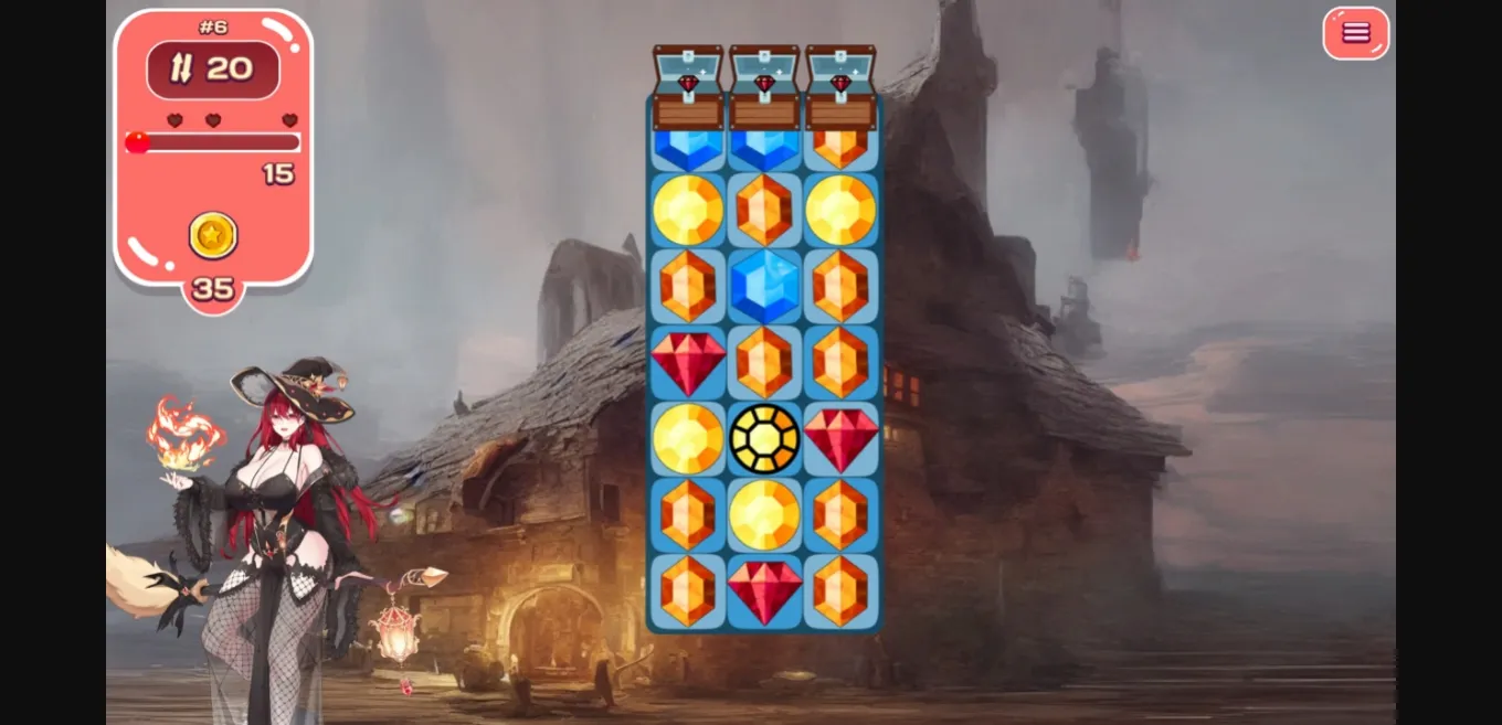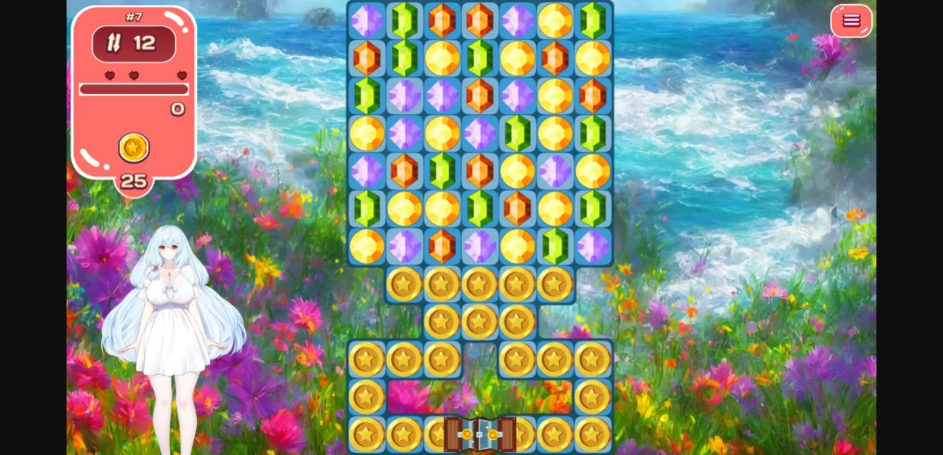 Naïve Riri is a match 3 game. You need to go through many interesting levels, breaking power crystals and rescuing girls from Evil! Travel the worlds: visit a tavern, wake up in an alien cave, visit an elven forest! In each location, you need to break the crystals, collect them in combinations and collect a certain number of hearts in order to awaken the sleeping girl! Naïve Riri is an amazing adventure with beautiful music, lots of levels and anime style. In Naïve Riri – You may expect 26 quite difficult levels, passing which you will save the girls from the forces of Evil!