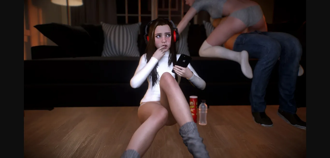 Your girlfriend Louise invites you over to watch a movie with her and her little sister, Holly. But during the movie Louise has an idea and wants to have some sexy fun. Will Holly notice you and Louise fooling around right next to her… and what will happen if she does?