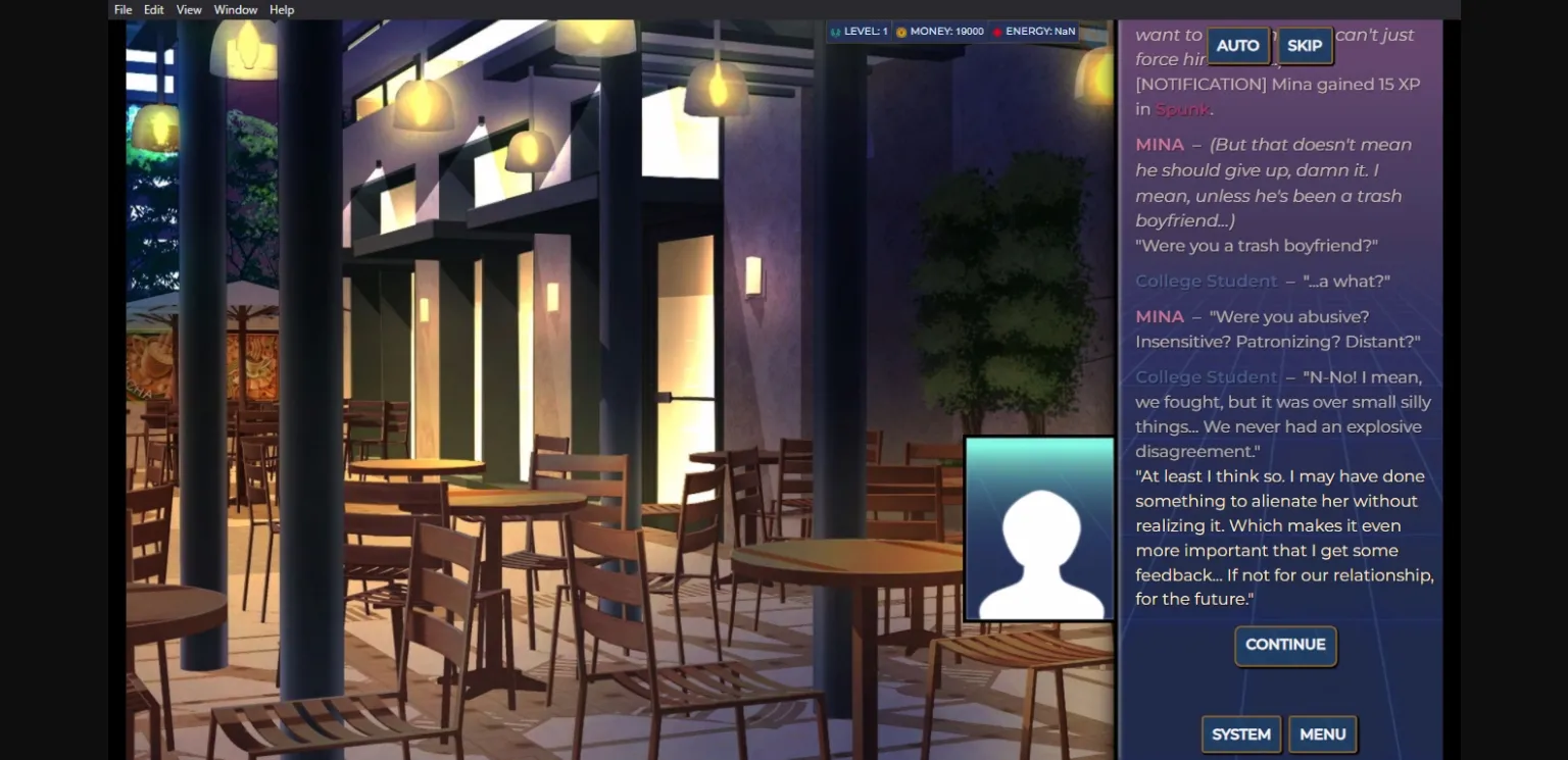 This is, as specified, a starting point. From now on, the game will be updated periodically -and the engine is still being made better and new features added- but the Demo will give you an indication of how most systems in the game work, the basic setup of the story, and the tone. Big shoutout to the new artist we’re collaborating with for the game, .