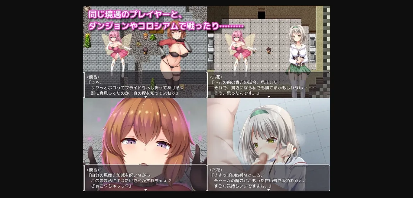 Battle in dungeons or the colosseum, stave off lewd assaults, and see if you can beat the game!