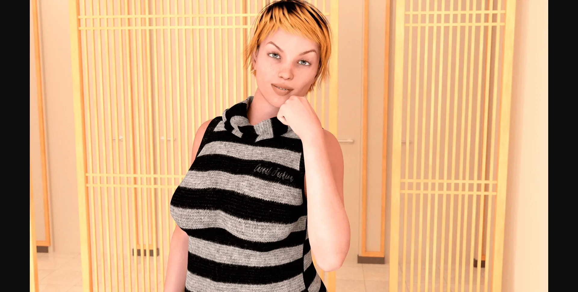 Male protagonist, big boobs, tit job, tit fuck, kissing. 3dcg, Kinetic Novel(For Now), milf