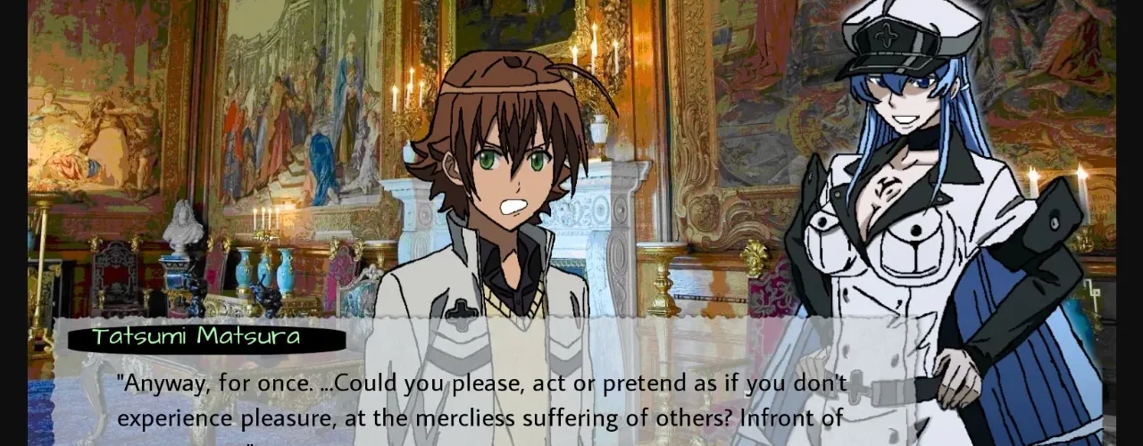 – Esdeath’s Route is the current development focus and is the Primary Route of the Visual Novel itself.