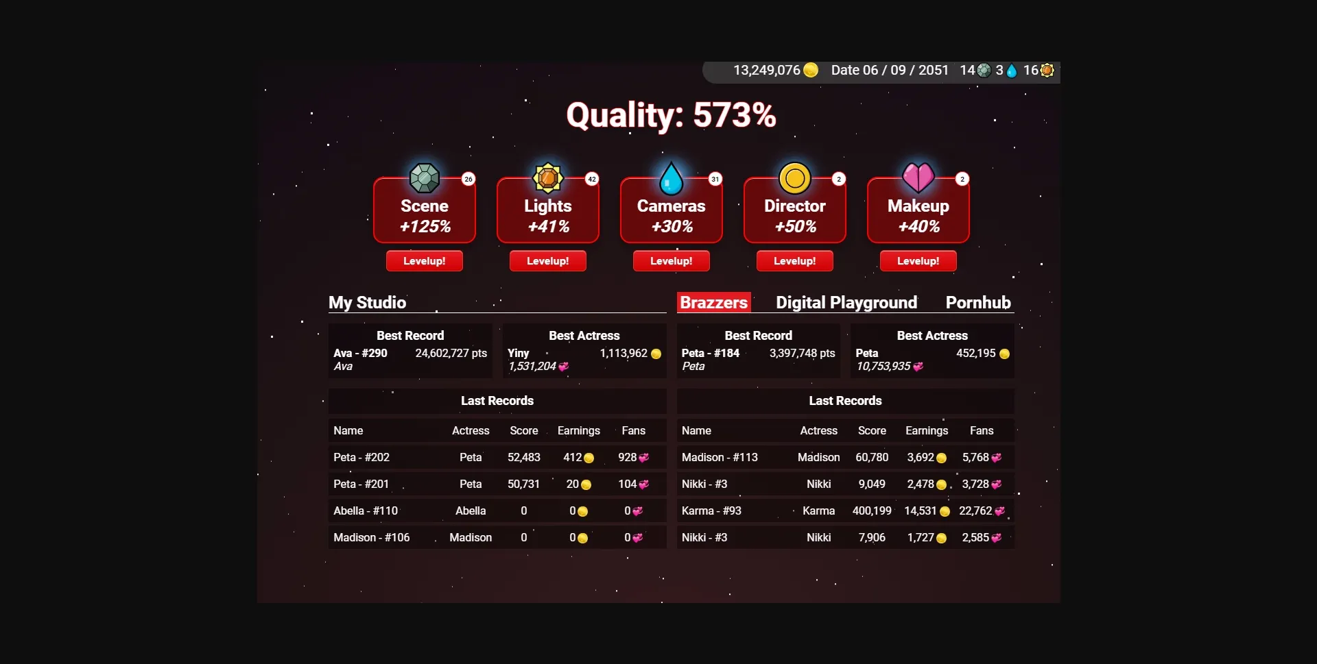 - All rewards & scores are affected by studio quality