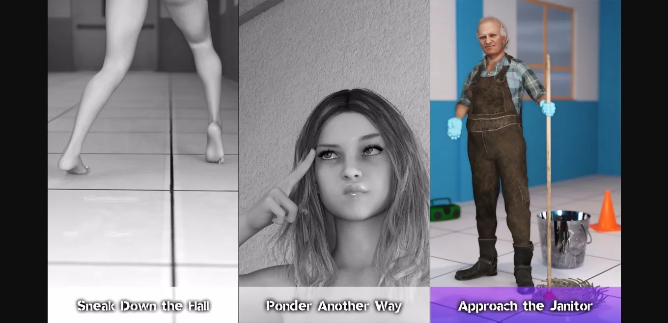 3dcg, female protagonist, big ass, school setting, ugly bastard, voyeurism, teasing, groping, exhibitionism,