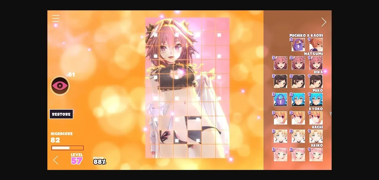 Mosaique Puzzle is an undressing puzzle game. Match the pieces and unlock new stages, each with less clothing. No need to move pieces around, just rotate them!