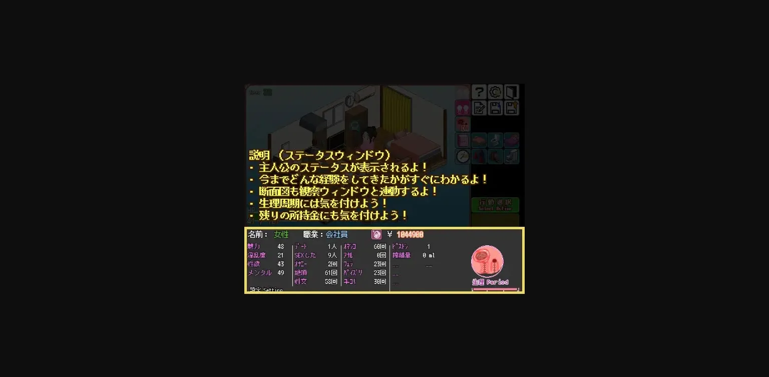 2D game, 2DCG, Female protagonist, Milf, Multiple endings, NTR/Cheating, Pregnancy, Romance (of sorts), prostitution, Slice of life/Daily living, Management, Animated scenes