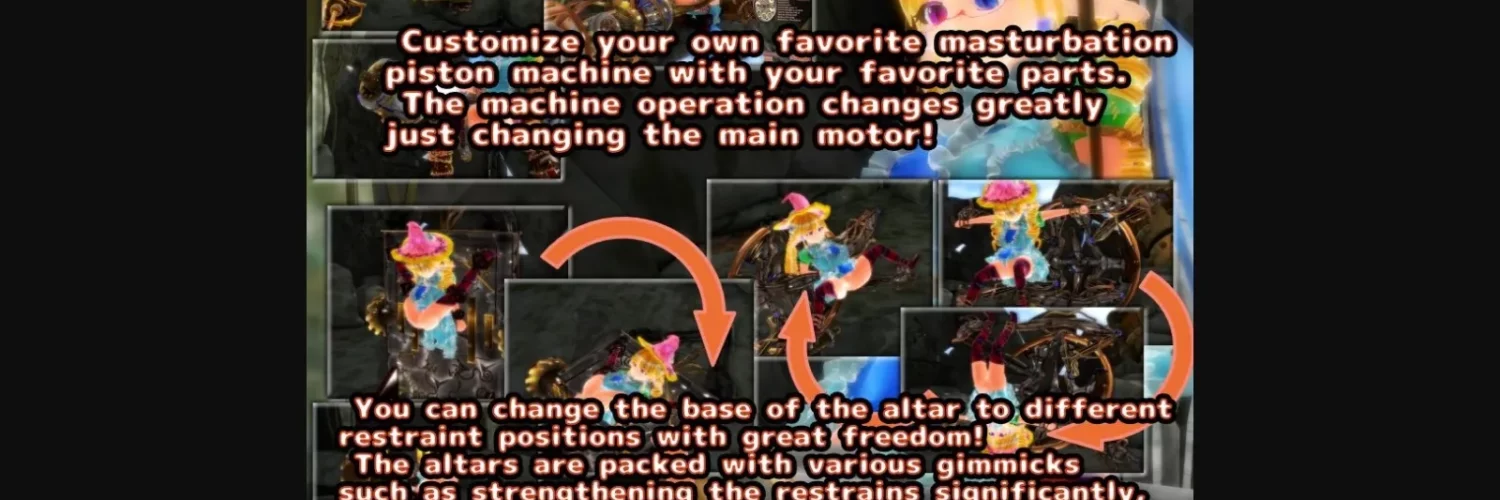In a ruined world remains only the Devil’s Castle. There was an elf witch Nagi who was masturbating to kill time with machines found in a small room in the basement. When she was satisfied with all the machines, she remembered the existence of a ruined temple on the top floor of the demon’s castle. There was a cloud buster secretly hiding a machine with incomparable amount of wickedness compared to the machine found in the underground small room. The Cloud Buster was a large machine that blew away stagnant clouds using orgone energy, and inside it contained machines used for rituals. Nagi got so fired up seeing the aggressive, torturing machine that she could die. When you free all the machines in this cloud buster, you’ll get a hint to fix the ruined world. Nagi decided to dedicate her body to these machines…. The harsh, unforgiving, and nightmare-like machine masturbation begins.