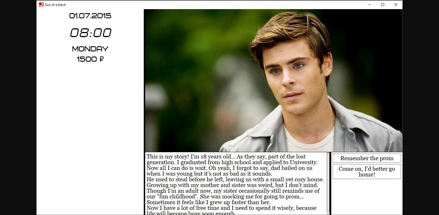 The protagonist of the game is a young man who just graduated from school and has to choose a way of life. You write his history. He lives with his mom and elder sister. And there are a lot of girls and women in games world!