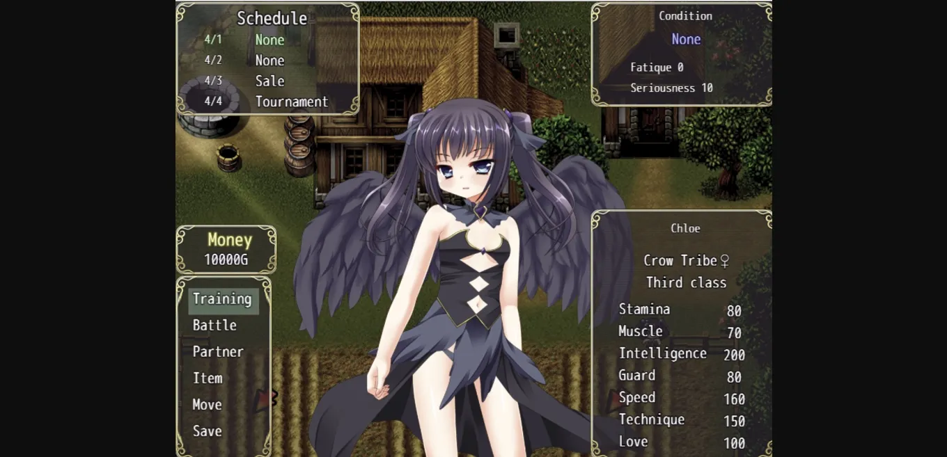 A bishoujo monster raising game, complete with battle ero, status effects, and NTR.