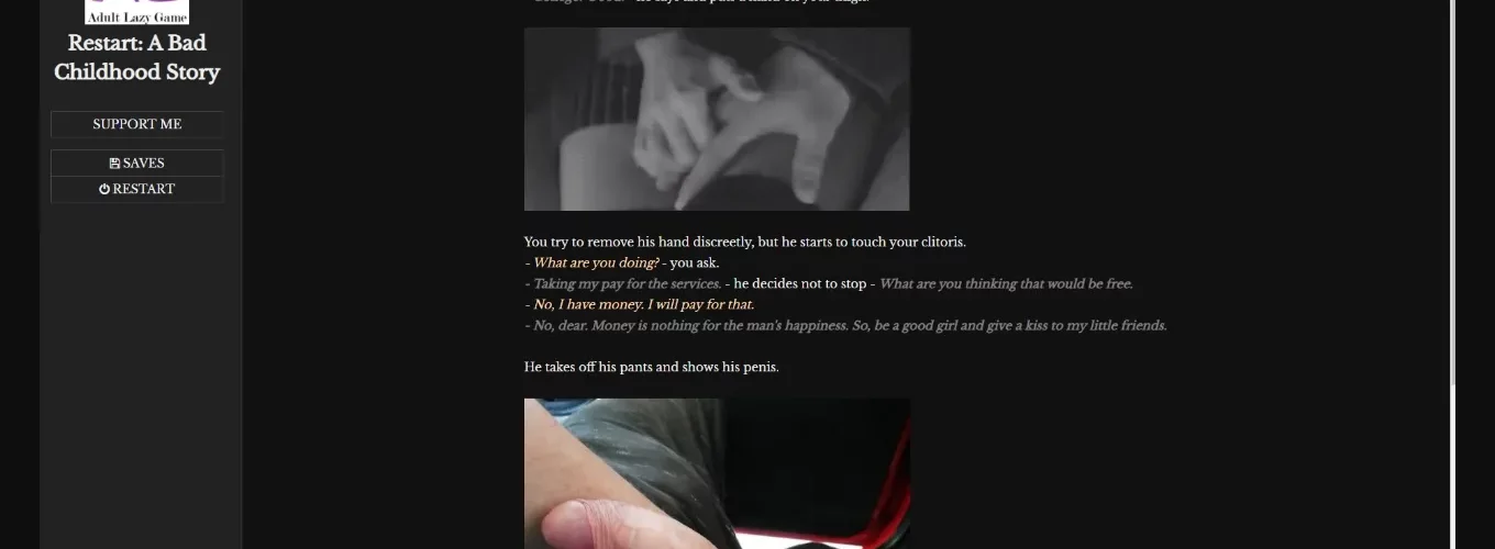 I am Adult Lazy Game and I present you Restart: A Bad Childhood Story. This is my first try to make a game. I hope you like it.