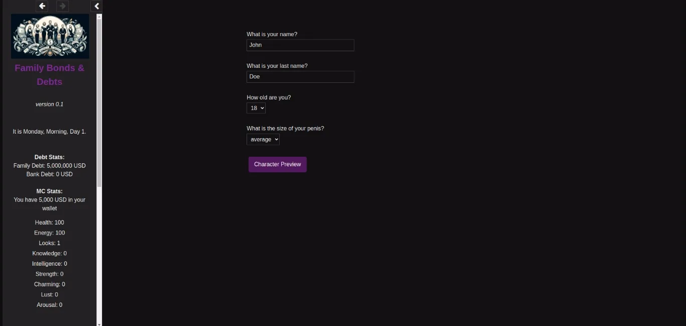 This is my first game and try in the initial version, in this game Family Bonds & Debts I am focusing on being an open world with many characters and main stories to give more gameplay and plot, trying to generate a complete immersion and you can have many hours of gameplay, I have been inspired by many games that I have had the opportunity to meet and I will be taking the best of each of them, the projection I have of the images are made by AI or at least the main characters, the other characters and videos for the moment will be real images (based on actresses in the industry) thus creating characters that will make you want to play more and find out how far you are able to go.