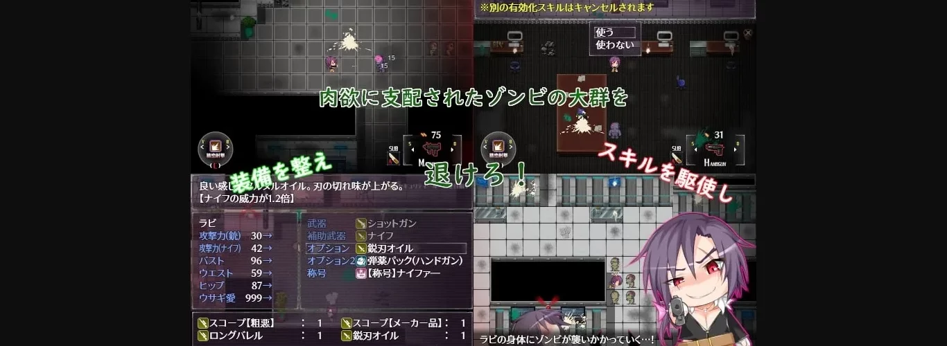 2D Game, 2DCG, Censored, Japanese Game, Female Protagonist, Multiple Endings, Anal, Ahegao, Beastiality, Bukkake, Creampie, Group Sex, Groping, Handjob, Humiliation, Internal Vew, Masturbation, Multiple Penetration, Necrophilia, Oral Sex, Rape, Sexual Harassment, Vaginal Sex, Combat, Shooter, Pregnancy