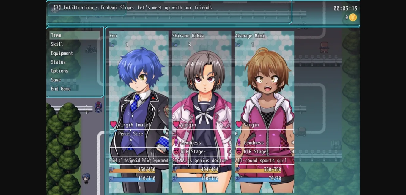 2D Game, 2DCG, Censored, Japanese Game, Male Protagonist, Multiple Endings, Voiced, Anal Sex, Ahegao, Bdsm, Bestiality, Big Ass, Big Tits, Bukkake, Corruption, Creampie, Dilf, Drugs, Exhibitionism, Gay, Group sex, Handjob, Harem, Humiliation, Internal view, Male Domination, Multiple Penetration, Netorare, Oral Sex, Rape, Sex Toys, Sexual Harassment, Spanking, Teasing, Urination, Vaginal sex, Virgin, Adventure, Mind control, School setting, Turn based combat