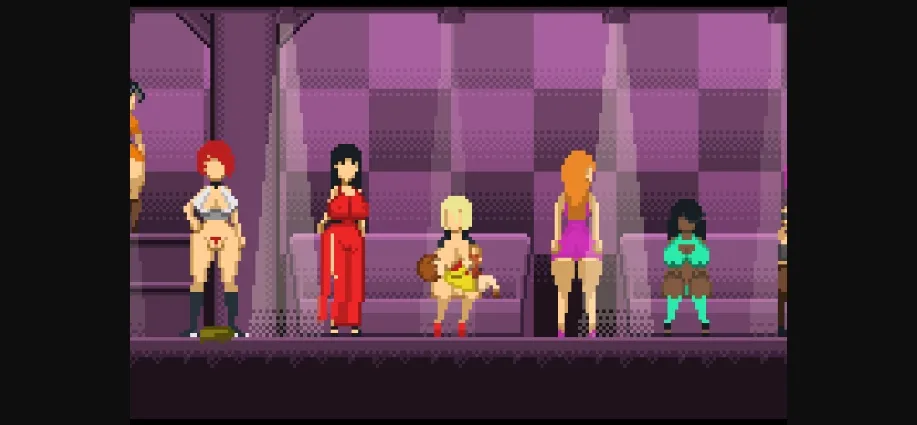 An animated pixel art game where you can do erotic things with the ladies in a small club.