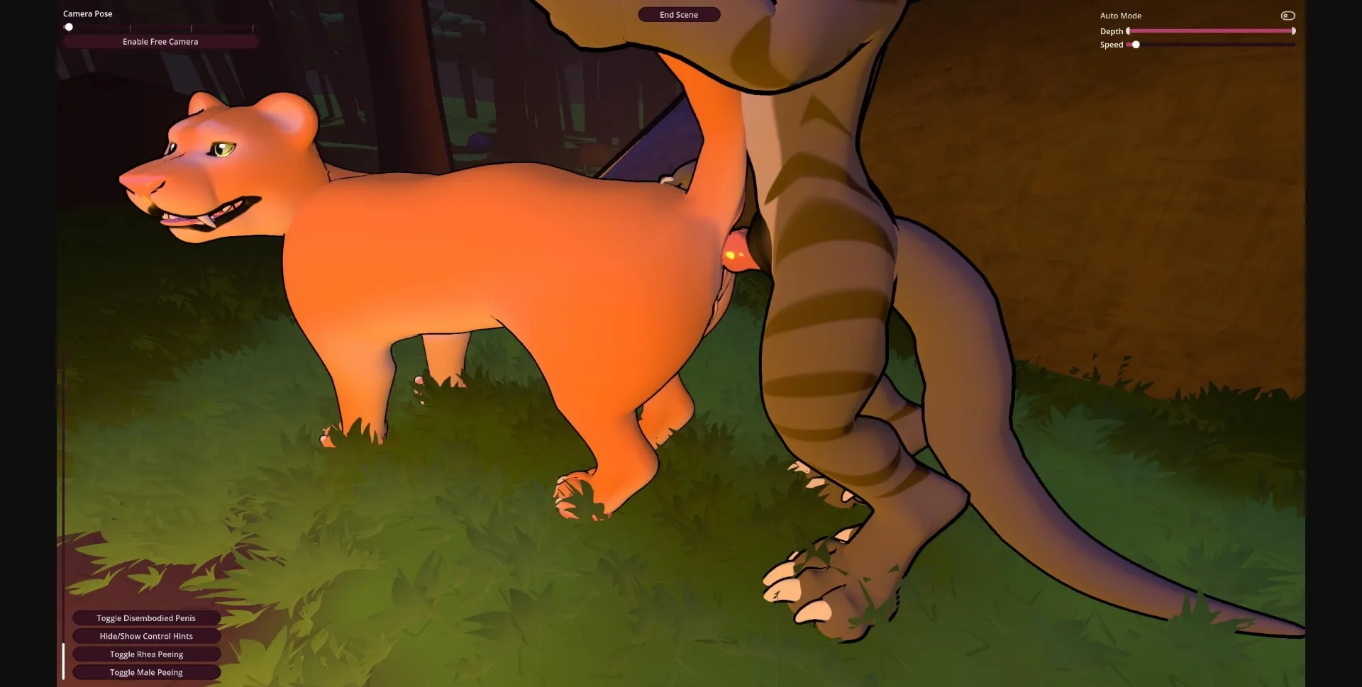 There’s also "auto mode", where you can control the min and max depth, and speed of penetration, allowing for completely autonomous penetration. A few scenes start with auto mode enabled by default, simulating Rhea controlling the scene. More depth may be added in future updates.
