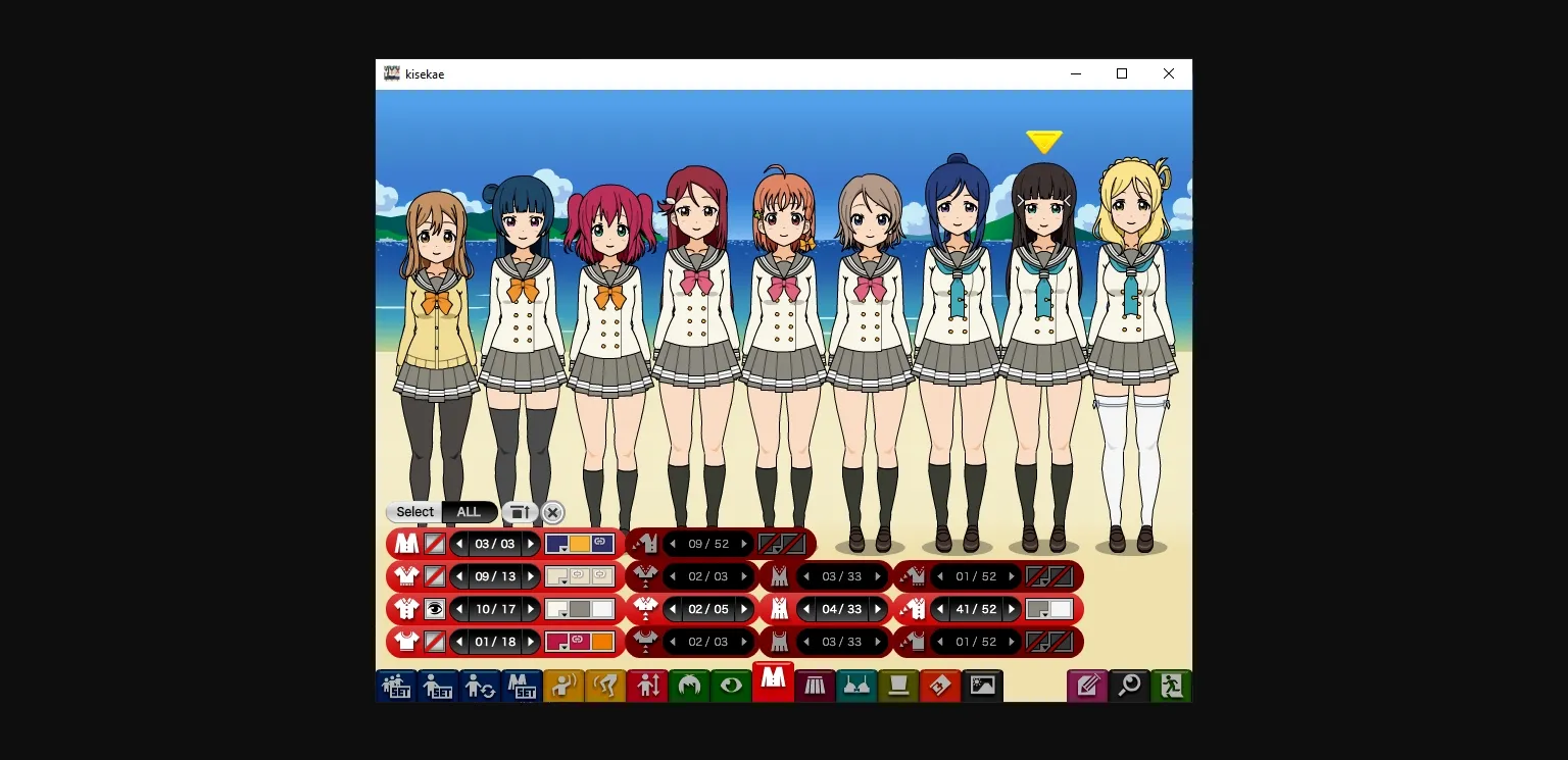A K-ON! parody dress-up game. Also known as "K_Kisekae 2". Some non-K-ON! characters are also included.