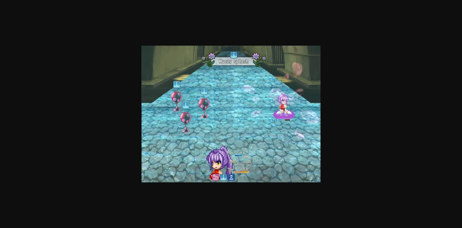 The underground waterway can enter from the 11th floor after passing through the cave area. Added "Red slime" as a new enemy. Be careful as you will be releasing a counter skill against melee attacks! And a new "Mucus bind" has been added as a new capture state.