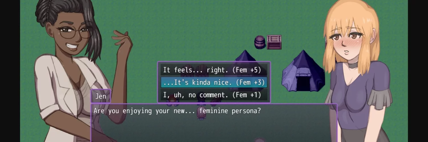 - Jen has one new expression in all her outfits, and Fantasy Protagonist has two new expressions, which have been retroactively added to scenes!
