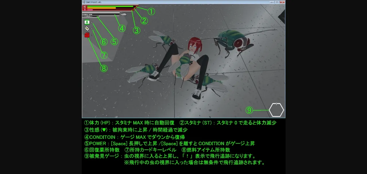 Escape from the mysterious research facility where huge insects are infested!