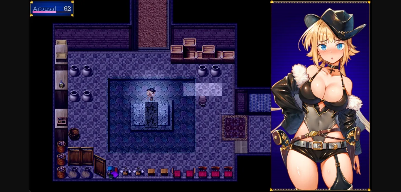Translated using @dazedanon‘s GPT MTL tool. Some of manual edits to fix errors and incosistencies, plugins translated by @Kryomancer. The game should be 100% translated and understandable, though not necessarily perfect. Keyboard & gamepad rebind menu is not translated, but it shouldn’t be needed as it’s standard RPGMaker fare and they are fairly self-explanatory. Calling card images left untranslated because the characters read them out in text anyways. I went over the main story content to ensure there should not be any egregious mistakes, quality control on the endless moans in the H-scenes might be a tad bit more lax. If you notice any problems, message me and I’ll see if I can fix it.