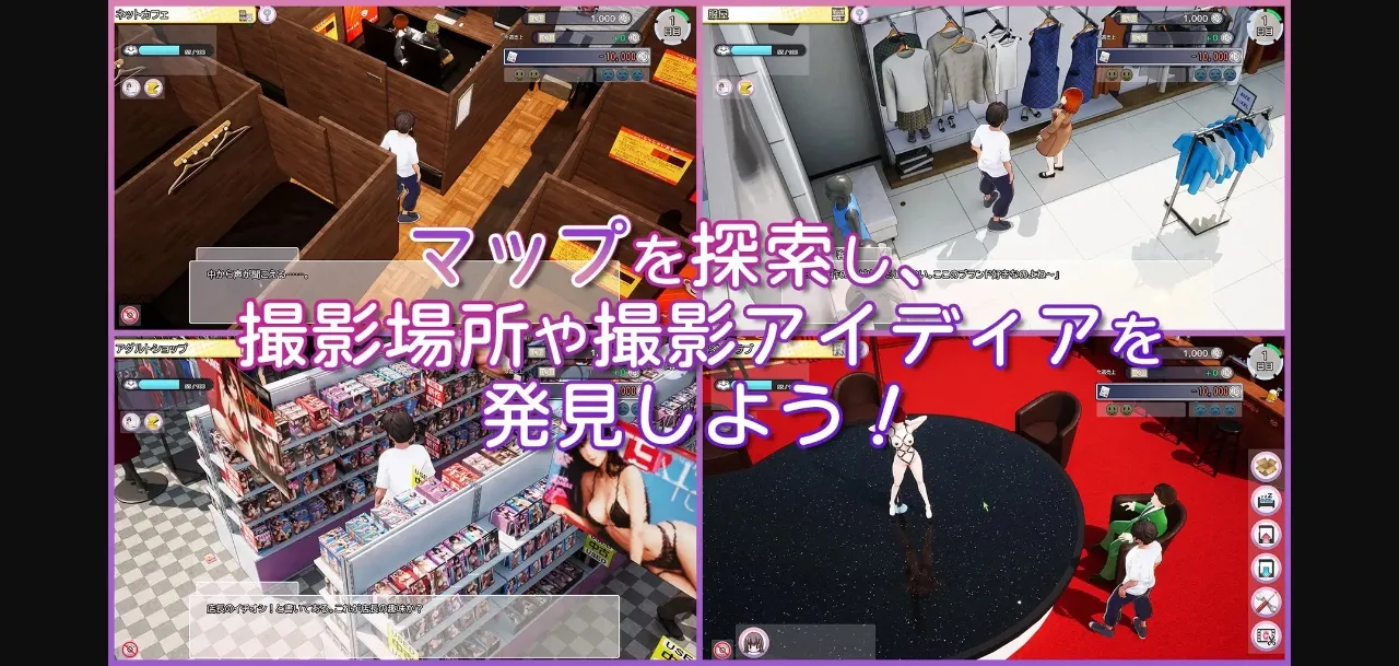 This is a simulation game where you can freely enjoy shooting, editing, and selling AV.