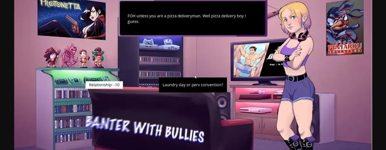 (After whining about your love life to the wrong witch you are banished to a dimension of supernatural humiliations and eternal sexual frustration-THE FEMDOM ZONE. Your only chance of escape is to find the six Girl Bullies and get on their good side but all six are eager to hand out harsh punishments for any disrespect! Dark powers will also be working to make sure you are too turned on and ashamed to interact with the Girl Bullies. Part adult dating sim and part fetishRPG.)