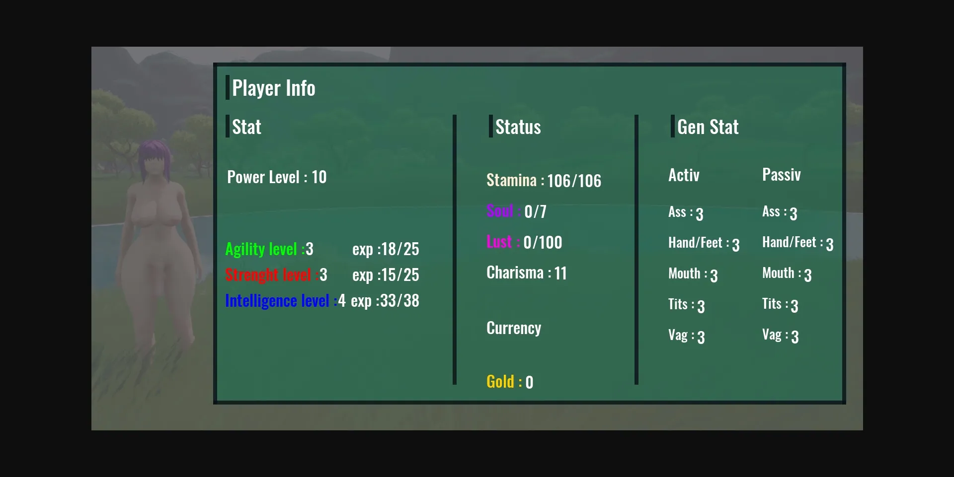Also there is Hidden control where you can change your gender and be naked with num pad8 and change the time of day with numpad 7 and completely hide ui with numpad 9