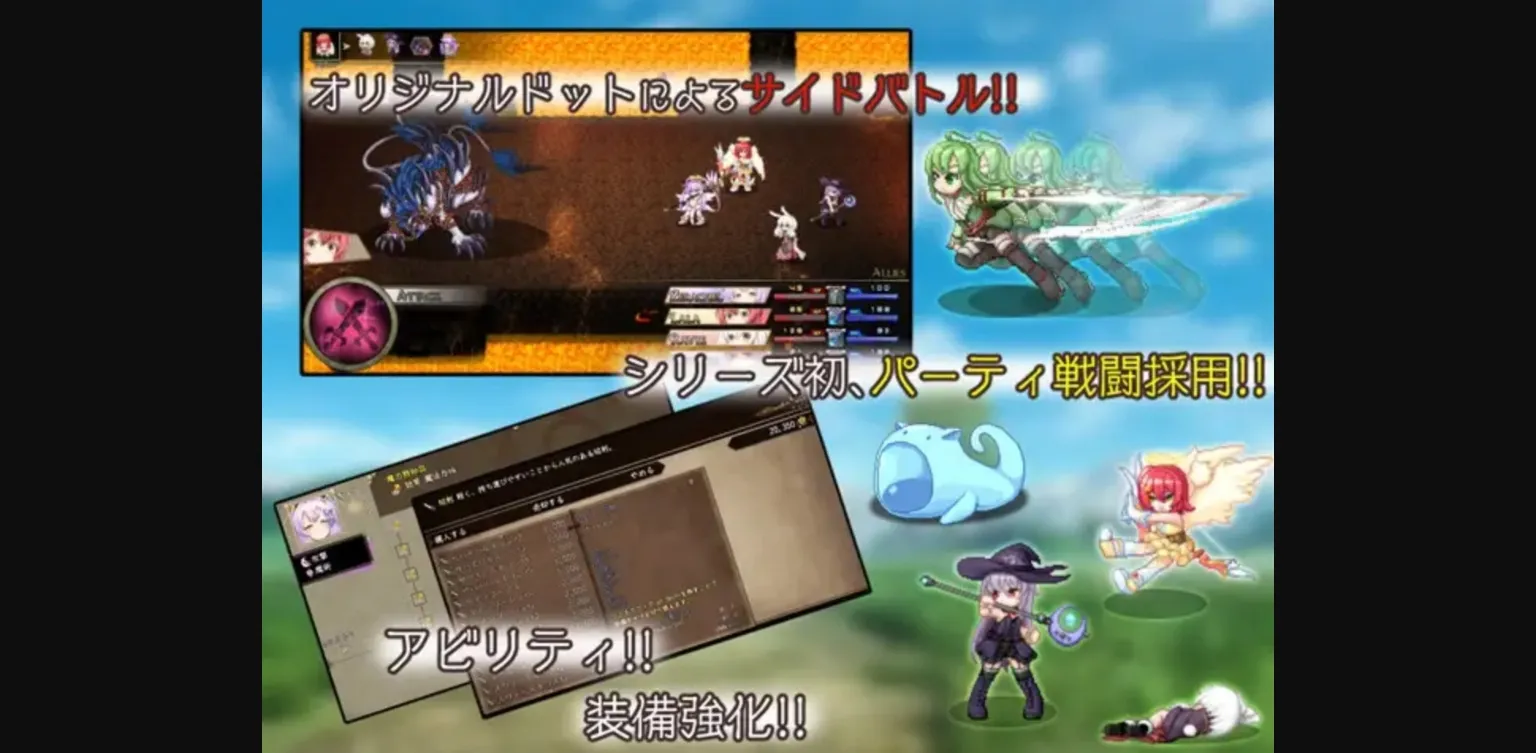 2D Game, 2DCG, Japanese Game, Female Protagonist, Anal Sex, Ahegao, Bdsm, Big Ass, Bukkake, Corruption, Creampie, Exhibitionism, Futa/Trans, Group sex, Groping, Handjob, Humiliation, Male Domination, Masturbation, Milf, Multiple Penetration, Oral Sex, Prostitution, Rape, Sex Toys, Sexual Harassment, Tentacles, Teasing, Titfuck, Urination, Vaginal sex, Virgin, Adventure, Combat, Fantasy, Monster, Monster Girl, Religion, Sandbox , Turn based combat,