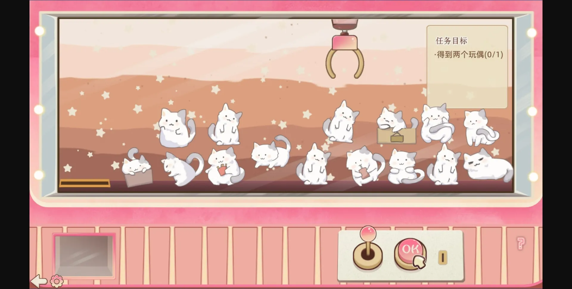 Move the joystick to press the button and collect the plush toys!