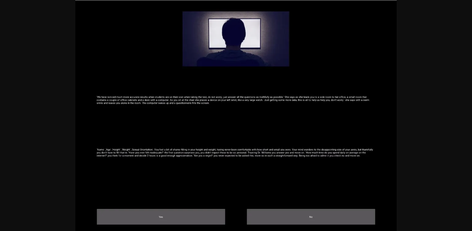 The game plays like a visual novel with choices and interactive minigames.
