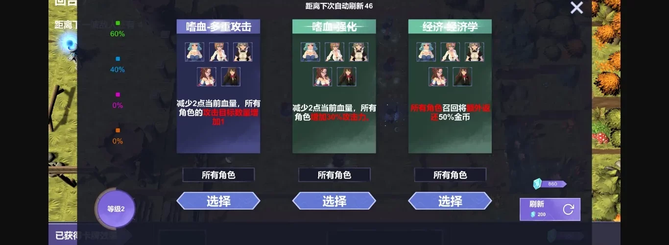 -For every successful defense, the next wave store will refresh 3 random skill CARDS for the player to choose to grow.