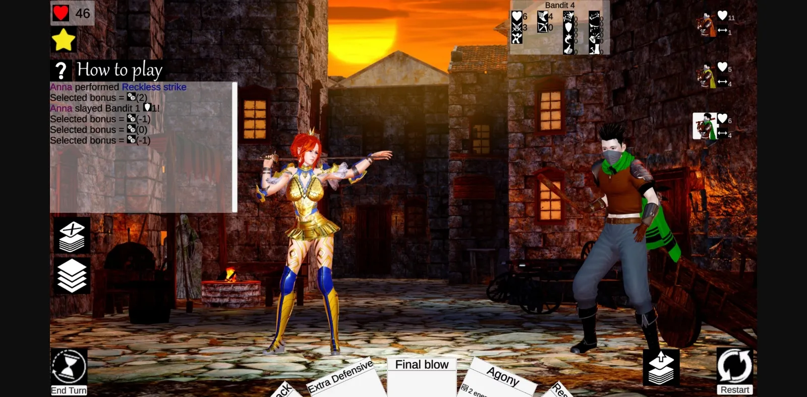 Anna’s state will be preserved till end of turn, which means, that Health won’t restore on their own, and every next combat will be more challenging, than previous.