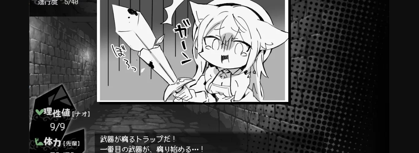 One day, two adventurers challenge a newly born dungeon. They are the protagonist and Nao. It is a dangerous and unknown dungeon. Along the way, Nao is attacked by a monster and falls into a special abnormal state. Treat the heroine Nao, who is afflicted with various abnormal states, in erotic ways!