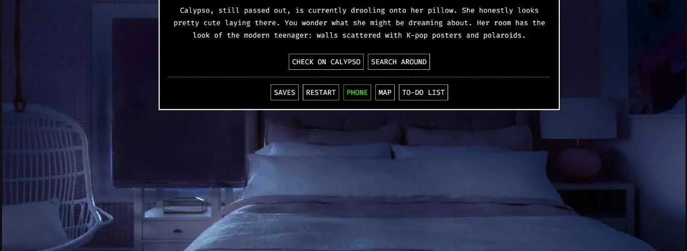 * Added a bar on top of all passages that allow for the player to access the PHONE, Saves, and Restart the game