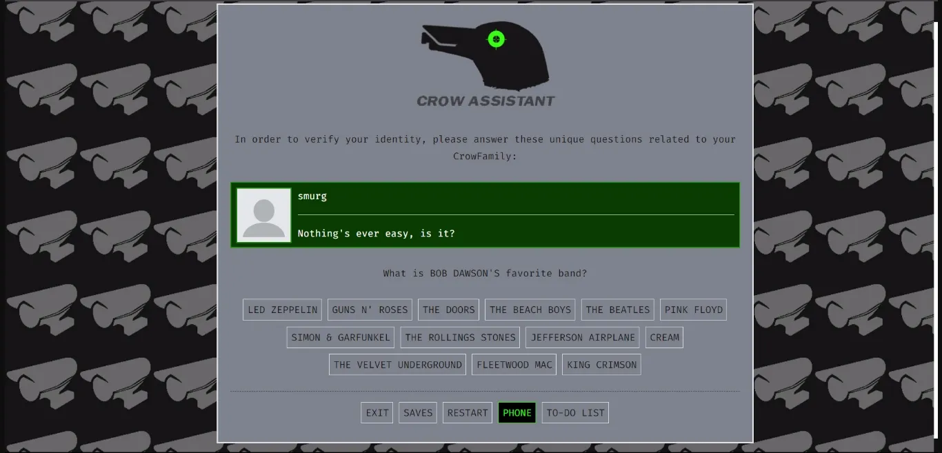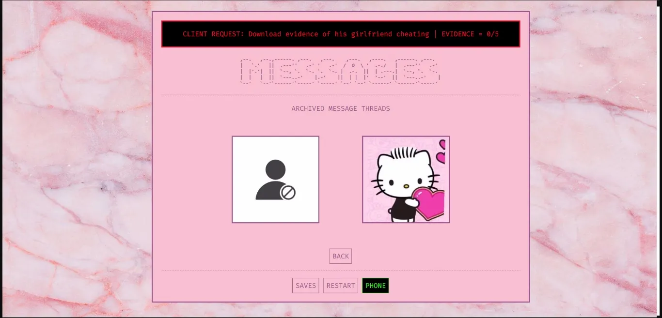 * Most of all: redid the tutorial hacking job to be interactive and interesting – added some additional story elements, a "Reset password" route to accessing the system, added a "Messages" tab to Cathy’s system, and added a Search Bar element that allows users to search through the system.