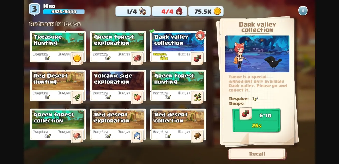 Unlock dungeon and send out your staff for an exploration quest to gather extraordinary ingredients.