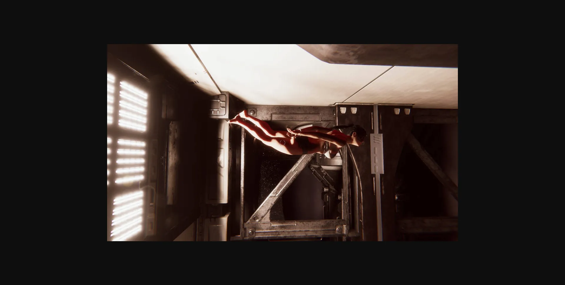 As you explore the ship’s various sections in challenging traversal sequences and struggle out of restraints in bondage escape scenarios, you’ll get to interact and build relationships with the ship’s crew, unfolding the story through cutscenes and dialogue while trying to figure out why you woke up stripped and in handcuffs one day.