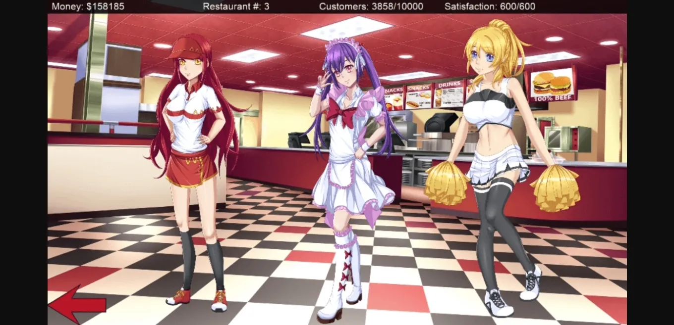 You are the owner of your own fast food restaurant and you must hire girls by shutting down competing fast food businesses.