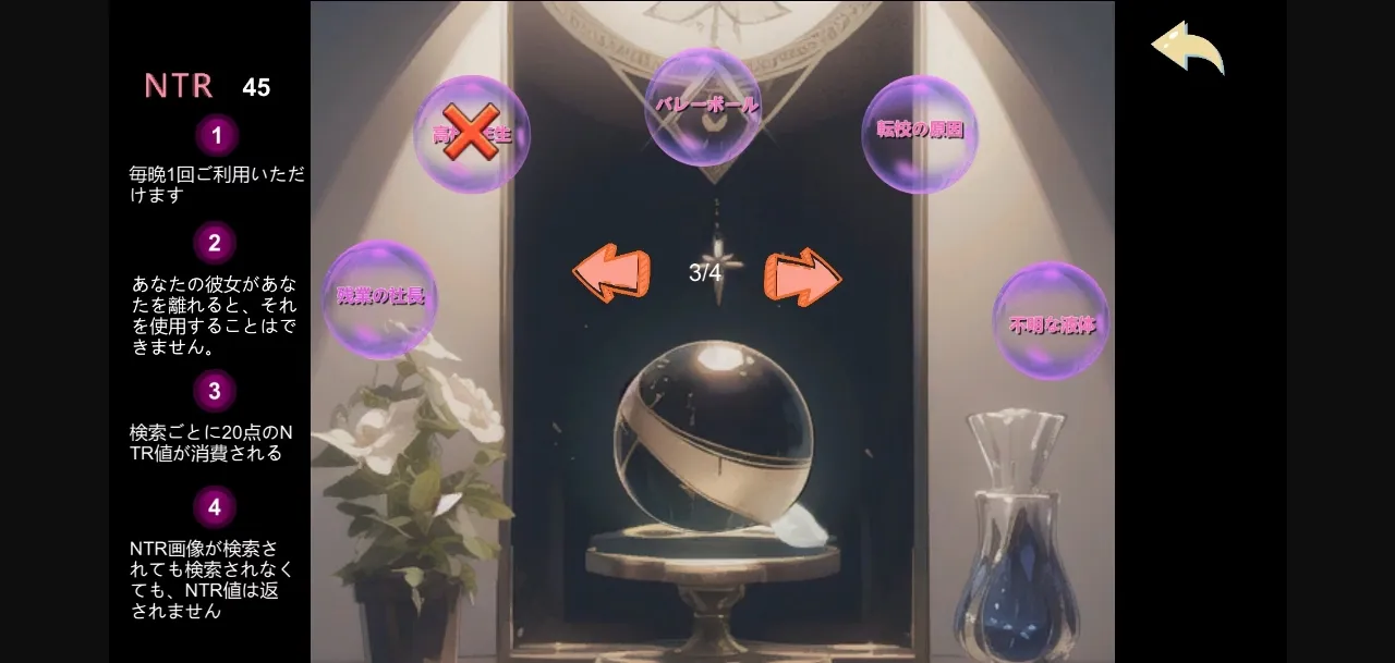 This is a 18+ love reasoning investigation game.The game controls the protagonist’s movement through the arrow keys on the keyboard, and interacts with the characters and objects in the scene through the space bar.
