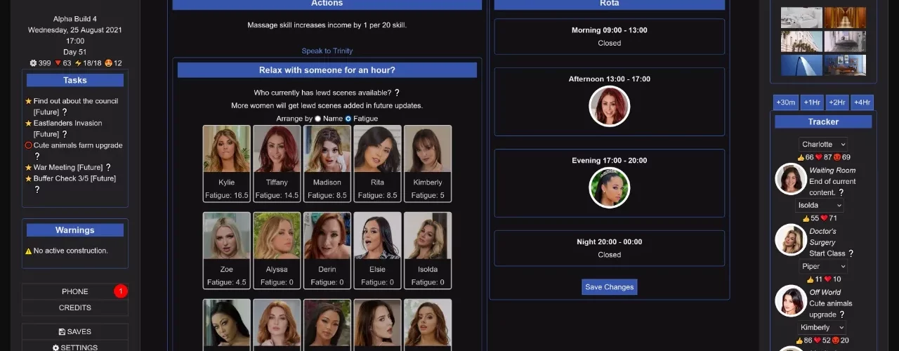• If you cheat and bypass rota management entirely, you’ll no longer get an error when asking Kimberly or Isolda to teach something.
