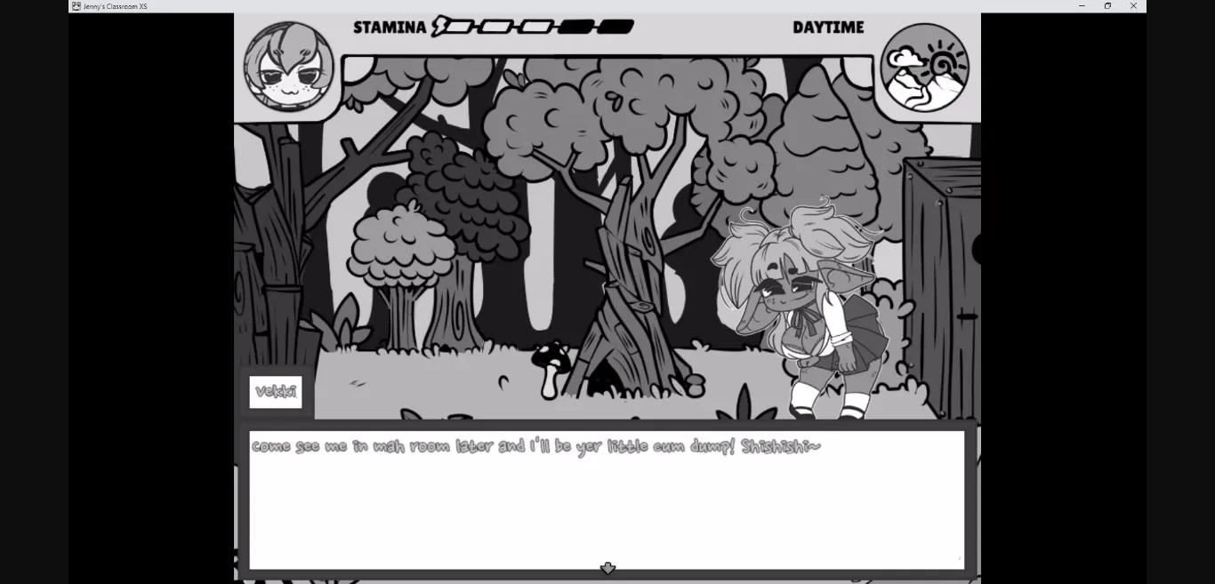 Help Jenny (futanari MC) survive her days of captivity in a recently destroyed town inhabited by monsters. Improve your relationship with the mischevious student NPCs in order to gain their favour and love!
