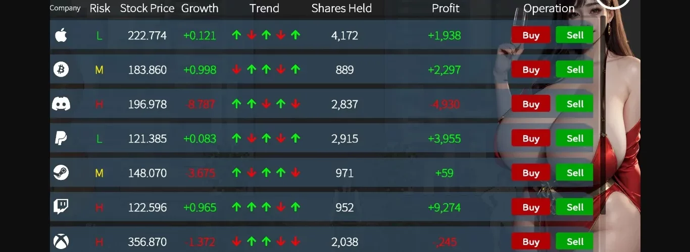 Join the company, play with stocks to make big money, interact closely with colleagues, and use the money you earn to buy photo albums!
