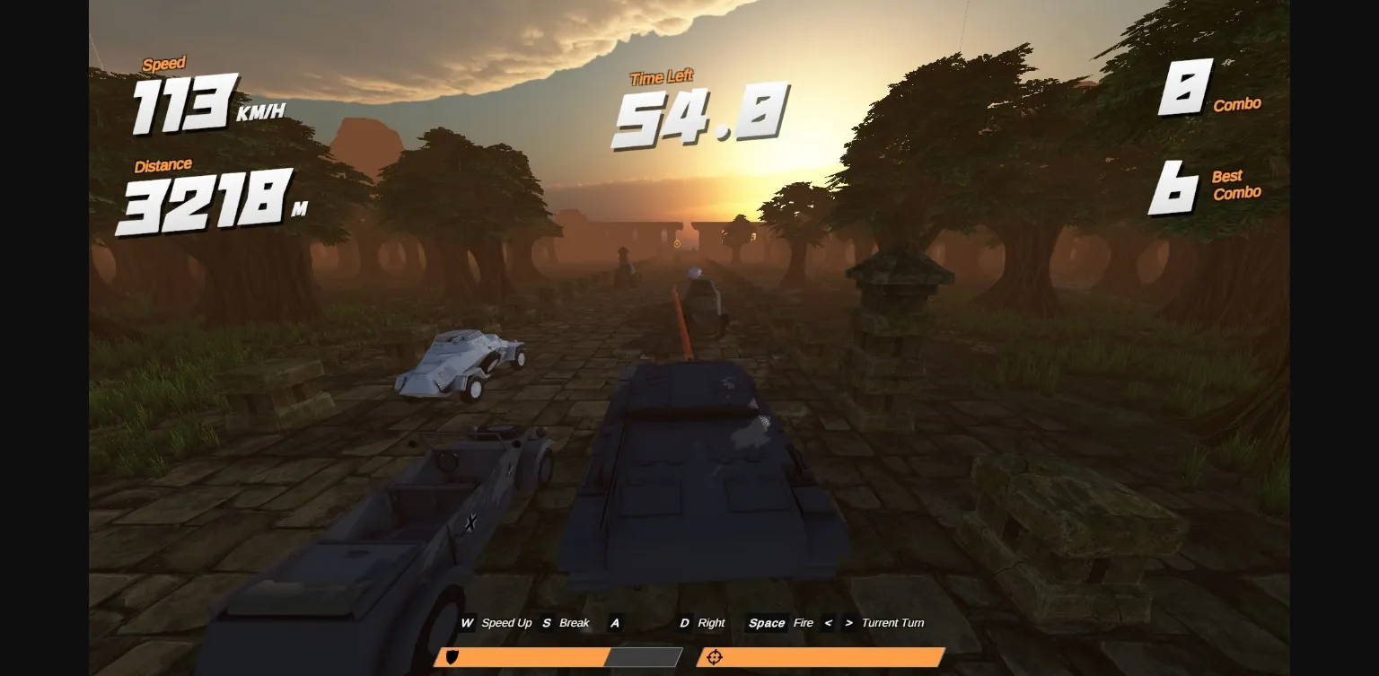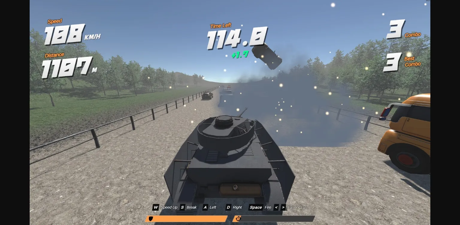 Drive your tank on a straight road, with many vehicles blocking your way. Utilize your exceptional driving skills to maneuver around them, or turn the turret and blast a shot to eliminate them.