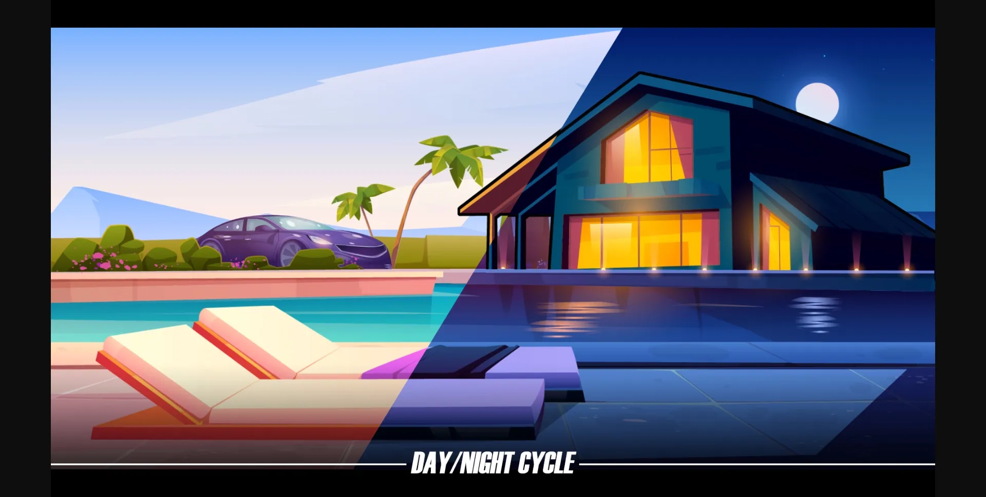 The game relies on a dual perspective, the quiet nature environment surrounded by trees and the lively urban lifestyle.