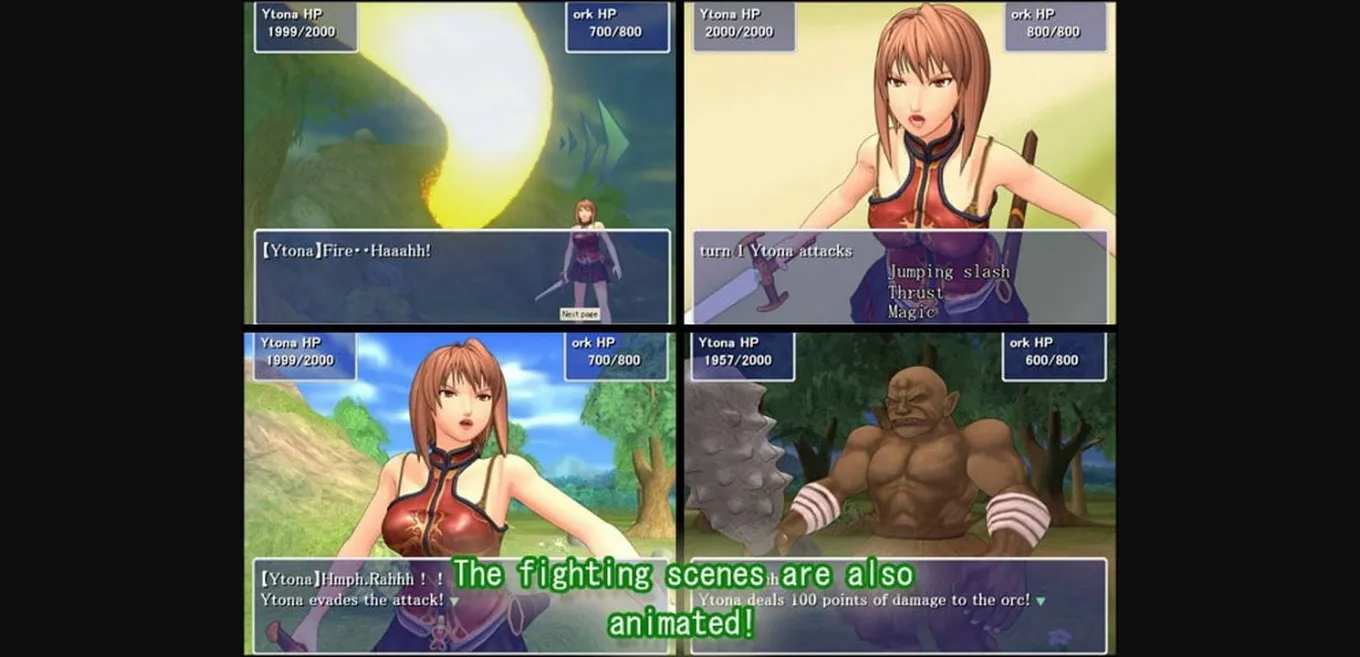 By selecting commands you decide how Ytona acts in the battle against the orc!