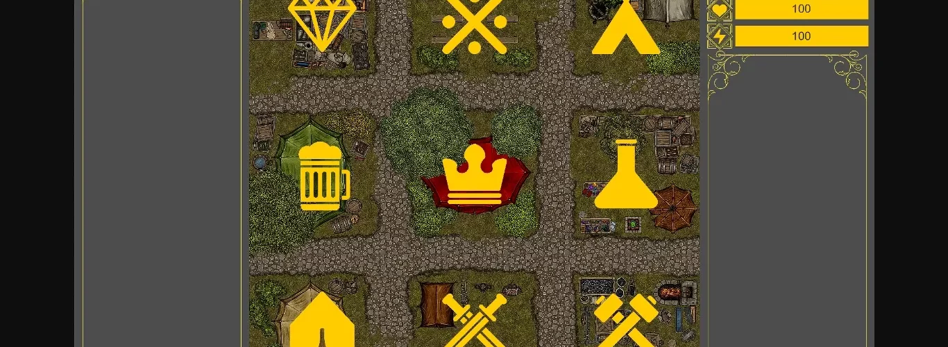 - 9 Location (Leader Camp, Warrior Camp, Bar, General Store, Alchemist Store, Church, House, Inn and Blacksmith)