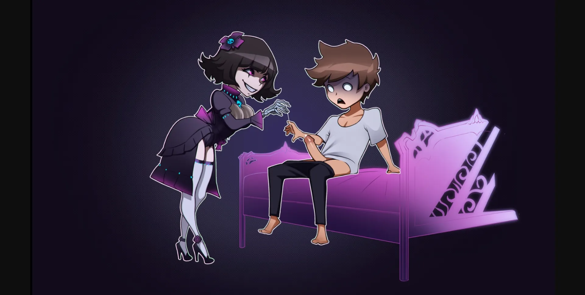 – An 18+ scene with Dzira – the dark elf (available after completing a quest. After defeating White, you need to go to Chloe and take a quest to find a collar).