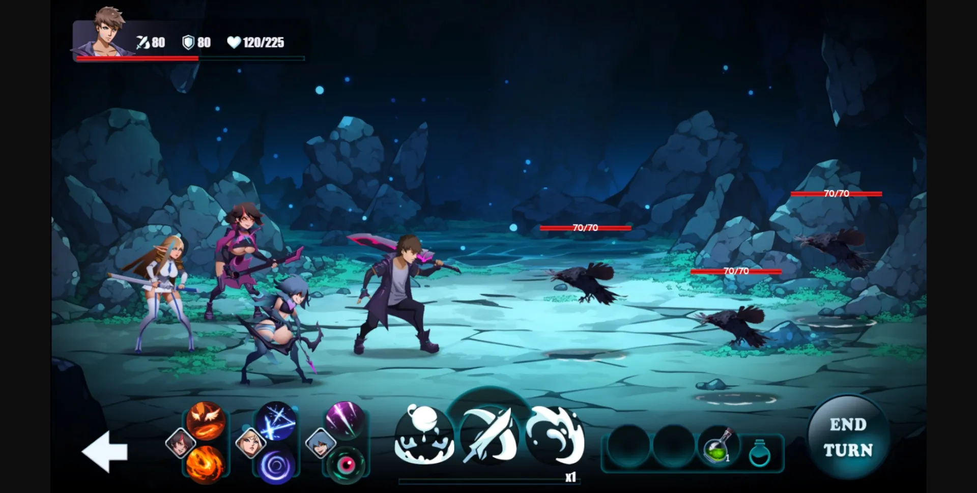 - Full-fledged turn-based combat system (character levels not only on stats, but also on how many people can be in a team).